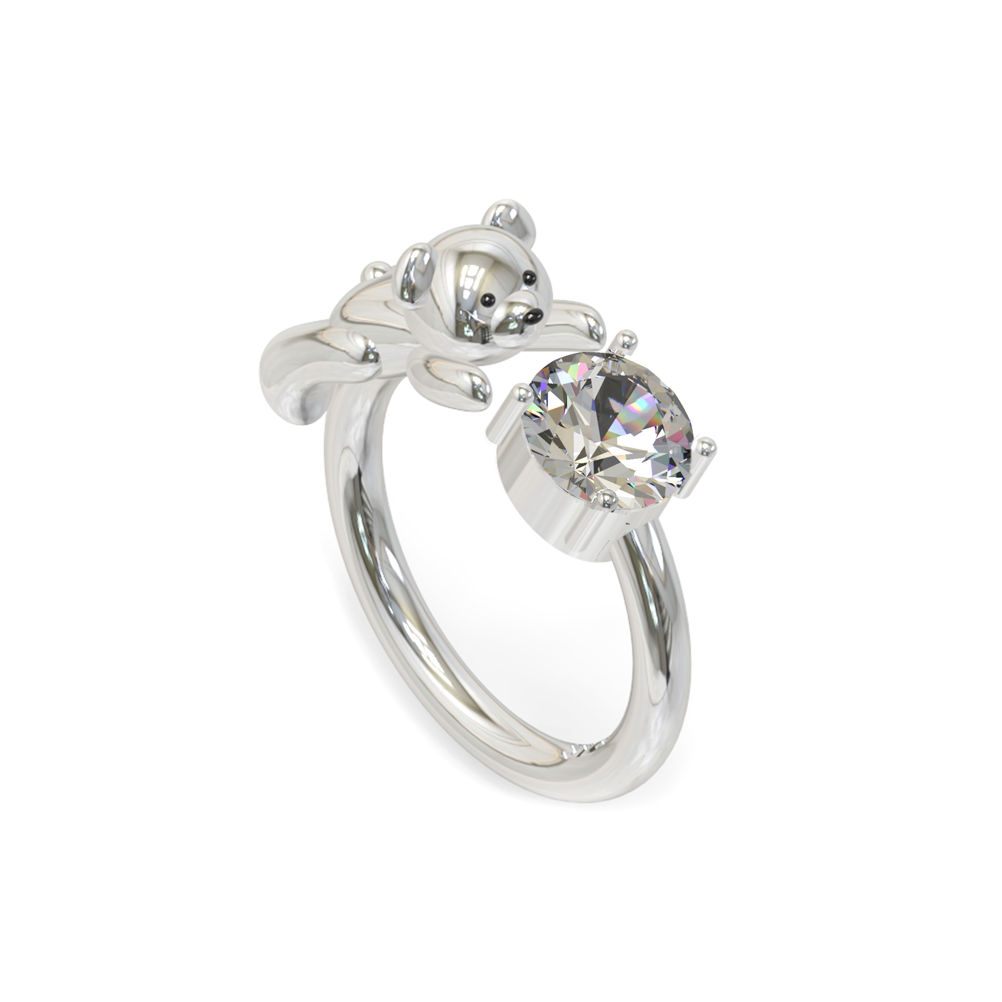 " 테디베어의 모형을을 반지로 제작한 큐빅이 세팅된 디자인"